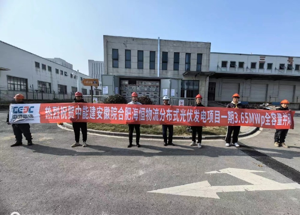 熱烈祝賀中能建安徽院合肥海恒物流分布式光伏發(fā)電項目一期3.65MWp全容量并網(wǎng)